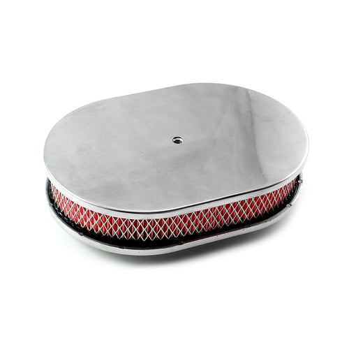 12" x 2" Oval Plain Polished Aluminum Air Cleaner Kit - Red Filter