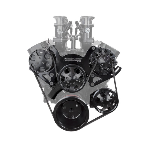 Chevy SBC 350 Aluminum Complete Serpentine Belt Drive System Kit [Black]