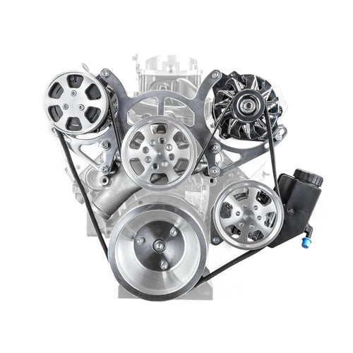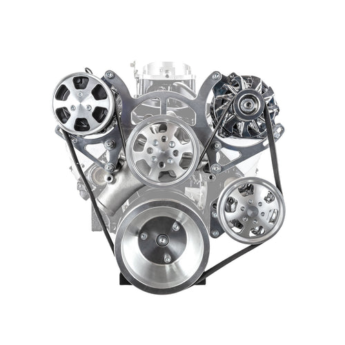 Chevy SBC 350 Aluminum Complete Serpentine Belt Drive System Kit - Polished