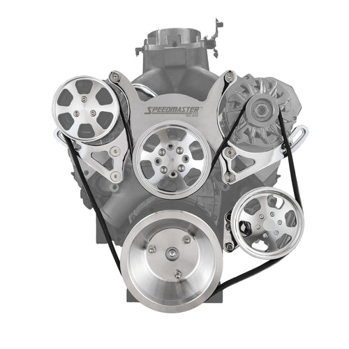 Chevy SBC 350 Aluminum Complete Serpentine Engine Pulley Kit [Polished]